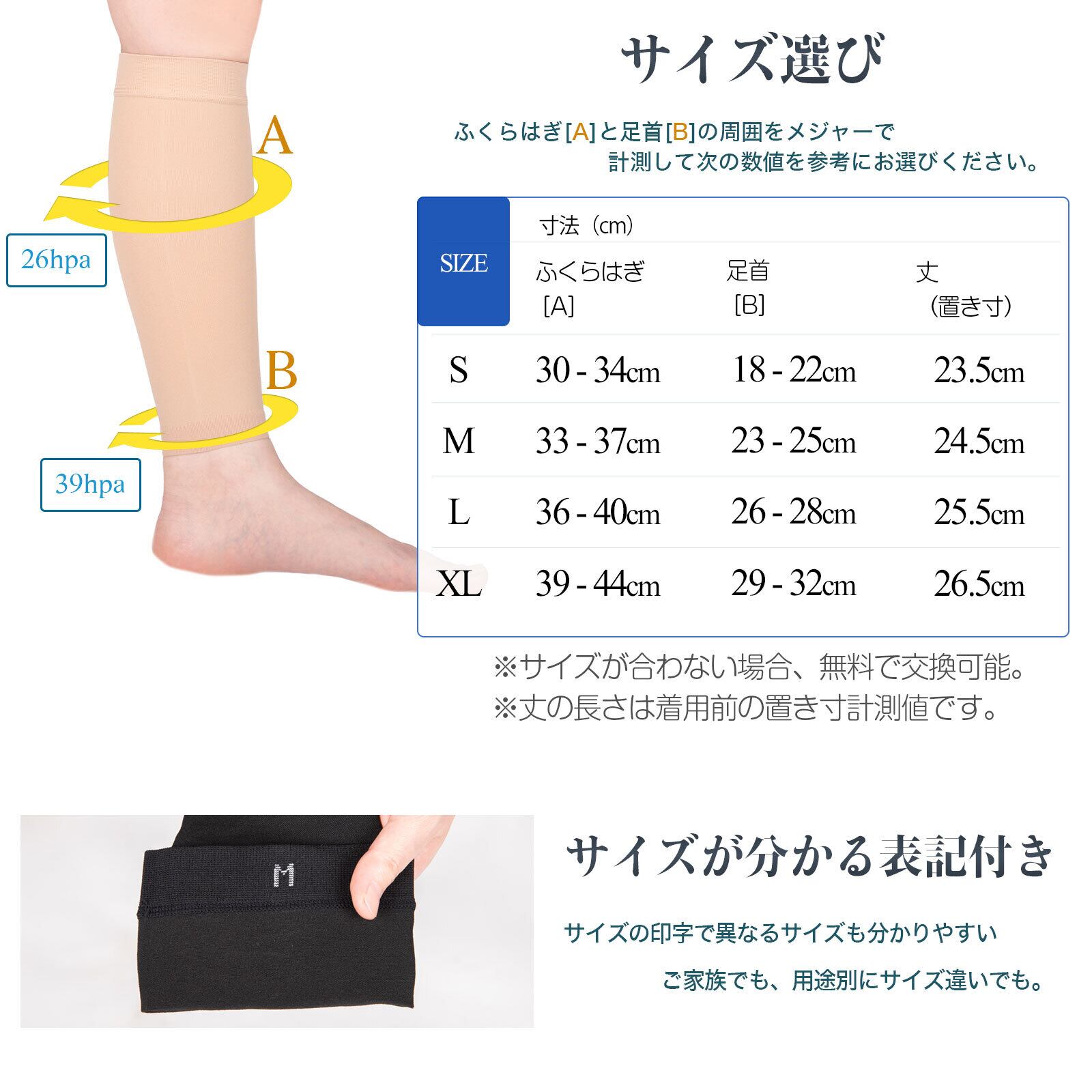 ふくらはぎサポーター 2枚(1足分) 【針灸治療院院長監修】 血行促進 静脈瘤予防 着圧 加圧 吸汗速乾 男女兼用 黒/ベージュ S-XLサイズ マラソン ジョギング ウォーキング スポーツ バレー 立ち仕事 むくみ対策 エコノミー症候群